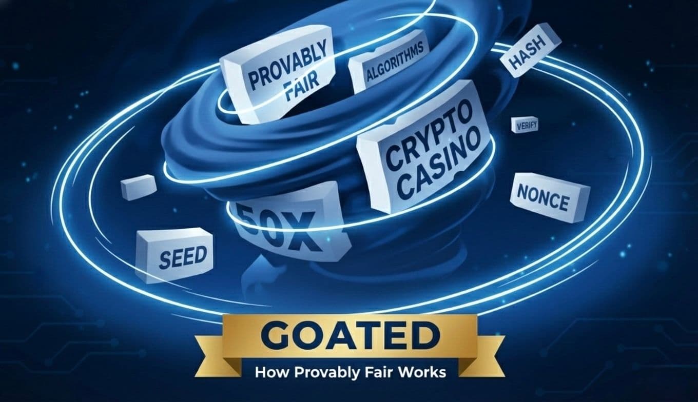 Provably fair games in crypto casinos use cryptography to prove each game result is fair. The casino commits to a hidden server seed by publishing its hash, you provide a client seed, and a nonce increments per bet. After the game, the casino reveals the server seed. Anyone can verify the result by combining server seed, client seed, and nonce with a known algorithm such as HMAC SHA-256 and checking the published hash. Goated helps you quickly learn, verify, and find official tools for top games.