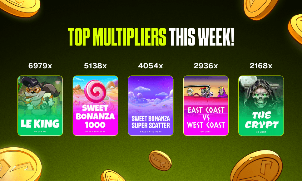 This week's top multipliers were wild. Imagine hitting a 6979x on your bet... could be life changing!