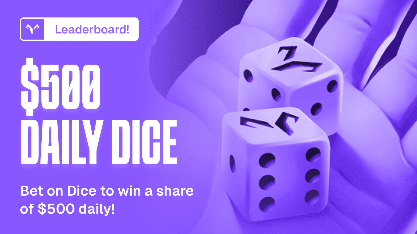 Welcome to the first ever daily original race on Goated... where the top 3 Dice players by wager volume split $500 every single day.